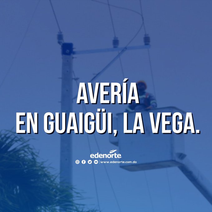 En la comunidad de Guaigüi, La Vega, una avería afecta el circuito GUAI50. Trabajamos para restablecer el servicio energético a la mayor brevedad posible.